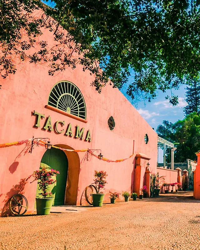 Descendemos de la movilidad para abordar una unidad particular que nos trasladará al interior del viñedo. Una vez dentro realizaremos el Tour Tradicionalen Tacama, que incluye una proyección audiovisual sobre la historia de la hacienda y los procesos de elaboración de vinos y piscos. Posteriormente recorreremos la bodega clásica, la moderna planta de producción y conoceremos el proceso de fabricación. Incluye degustación de vinos y pisco.